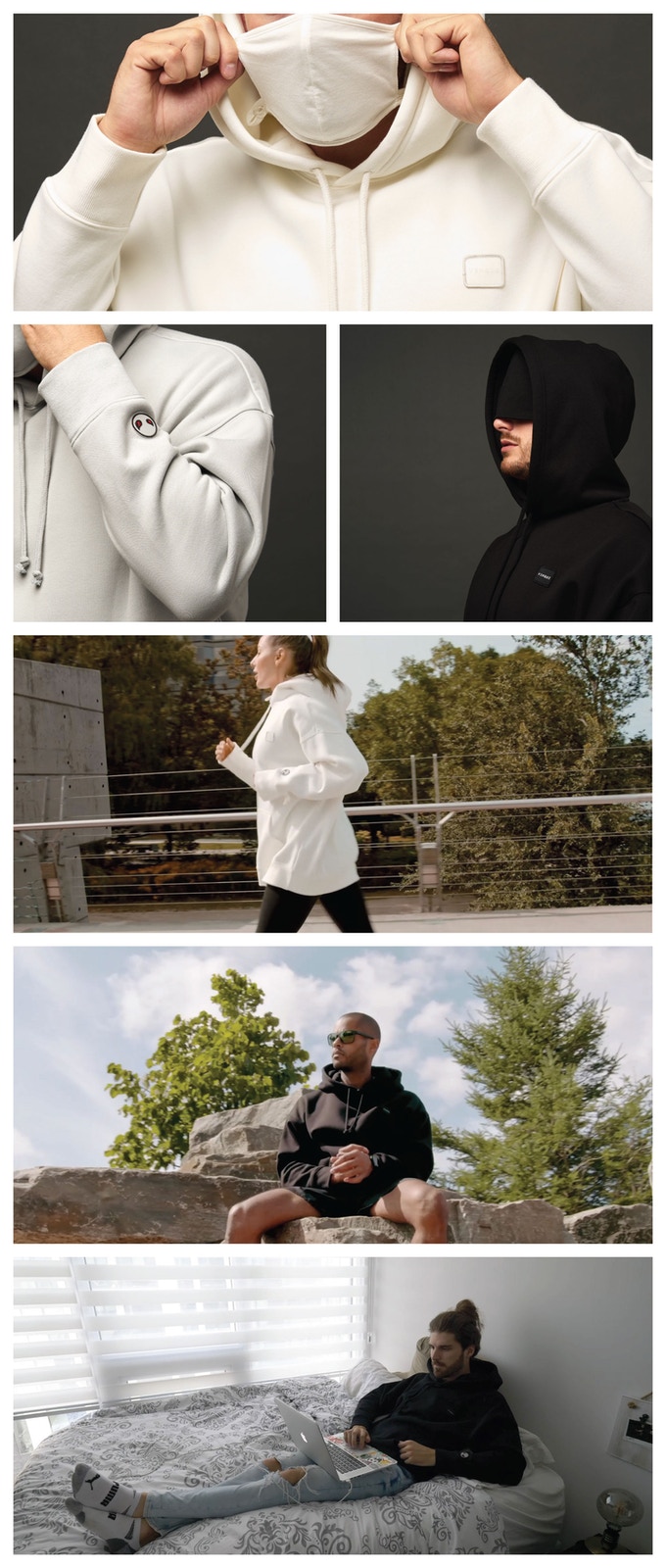 A Versatile Hoodie with Built-in Masks, for face and eyes, all in ONE, sustainable, functional, 15+ features for travel and leisure.