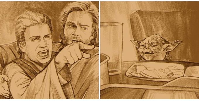 사람들이 많이 사용하고, 친숙한 이미지다 보니 여러 밈들이 그러하듯 디자이너와 작가들에게 큰 영감을 주었습니다. 구글에 'Yelling at cat meme drawing'이라고 검색하면, 다양한 테마로 재해석한 그림들을 만나볼 수 있습니다. 이집트의 벽화를 연상케 하는 그림에서부터 스타워즈 테마까지, 다양한 그림들이 웃음을 자아냅니다. 사진의 주인공인 테일러 암스트롱도 쿨하게 밈을 즐긴다고 하네요. 아무튼 유쾌한 밈은 사람들의 마음을 즐겁게 합니다.