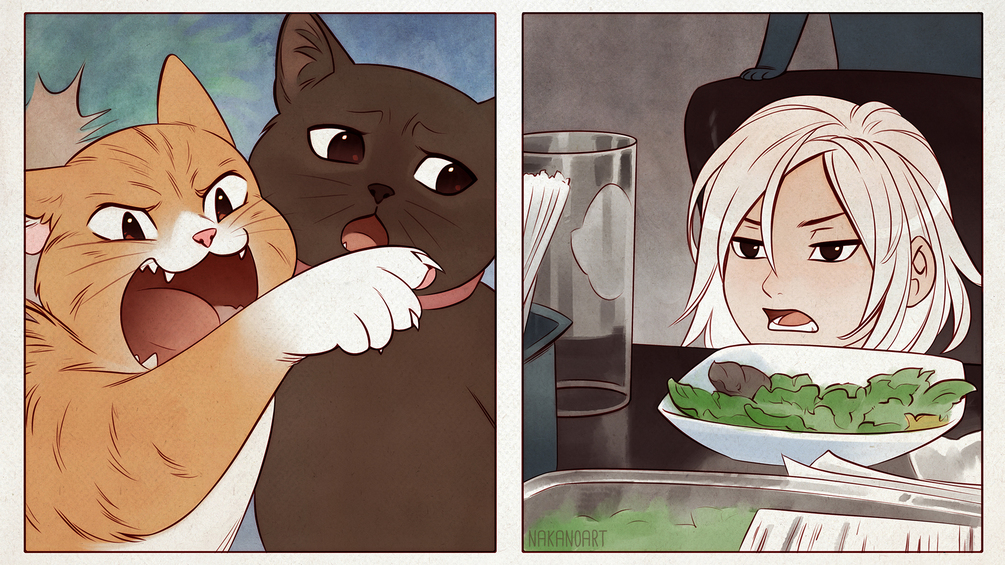 인터넷을 하다 보면 꼭 보게 되는 사진이 있죠. 왼쪽에는 백인 여자가 소리치며 울고 있고, 오른쪽에는 고양이가 얄미운 얼굴을 하고 있는 사진입니다. 'Yelling at cat meme'이라고 널리 알려진 이 사진은 어떤 사람이 우연히 핸드폰 앨범을 열었는데 두 사진이 붙어있는 것을 발견하고, 재미 삼아 인터넷이 올린 것이 시작이라고 하네요. 마치 사람과 고양이가 서로 싸우는 것 같은 이 사진은 사람들에게 폭발적인 인기를 끌며 각종 사건 사고를 풍자할 때 사용되었습니다.