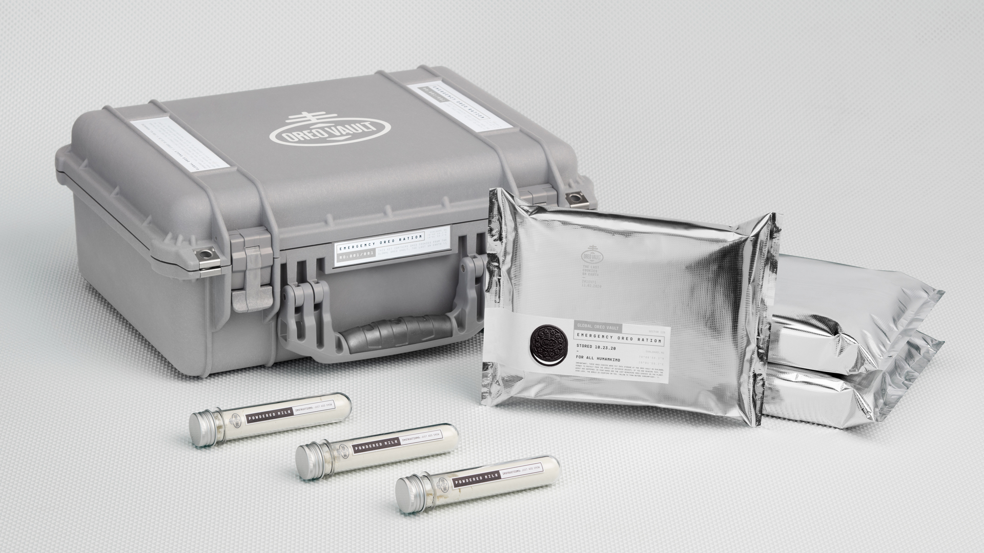 또한 저장고 내에 어떻게 보관되는지를 공개하며 사람들의 이목을 집중시켰습니다. 공개된 '비상 오레오 보급 팩 (Emergency OREO Ration Pack)'을 보면 극한의 온도에도 견딜 수 있는 박스와 밀봉 팩으로 오레오가 '보호'되고 있는 것을 볼 수 있는데요. 여기에 오레오를 가장 맛있게 먹을 수 있는 방법 - 우유에 찍어 먹는 -으로 먹을 수 있도록 분유가 함께 저장될 것이라고 합니다. 굉장히 치밀하게 과자를 보관할 수 있게 노력하는 모습이 인상적인데요. 종자와 더불어 과자까지. 미래의 식량에 대한 희망이 엿보입니다.